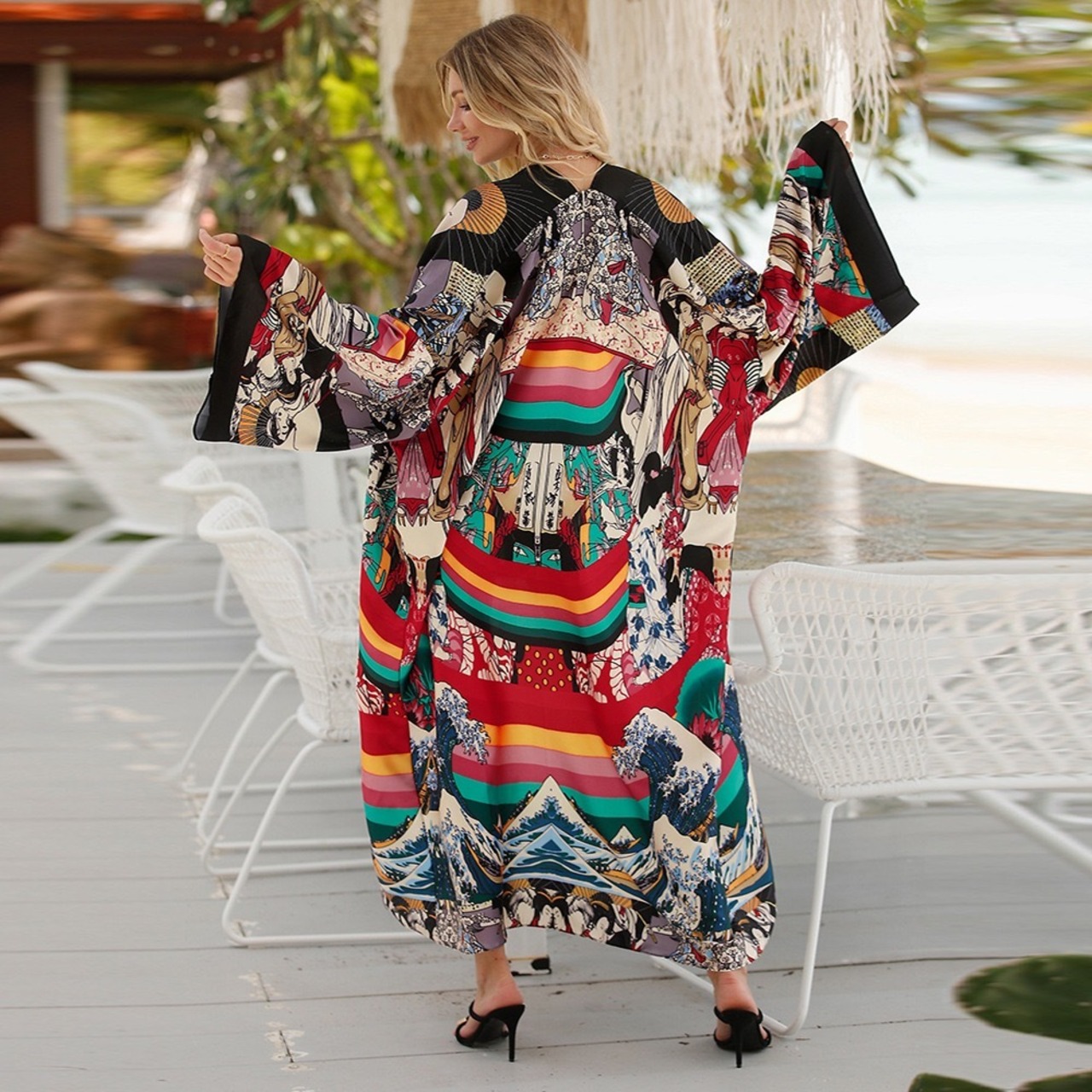 レトロな雰囲気漂う、和柄のロング丈カーディガンが登場しました。ダンスチームやステージ衣装、ビーチウェアとしてもぴったりな一枚。ヴィンテージ感漂うデザインは、おしゃれな大人の女性にぴったりです。